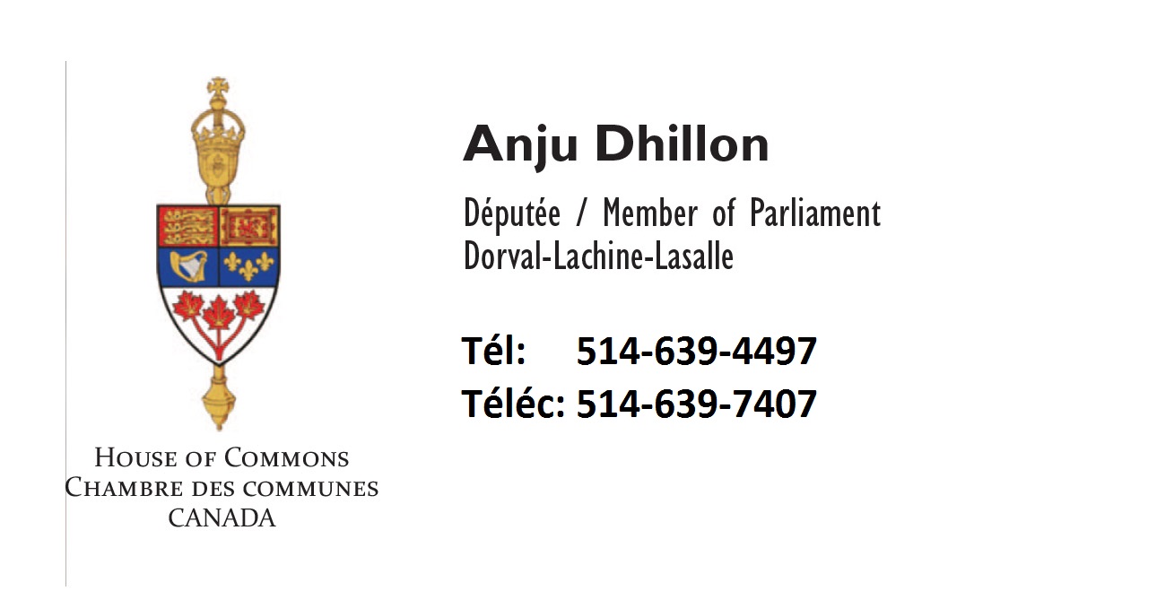 Madame Anju Dhillon: députée fédérale de la circonscription Dorval-Lachine-LaSalle.